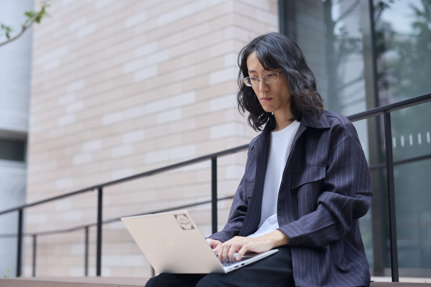 近くのベンチや道路沿いなど、いろいろなロケーションで撮っていただきました。